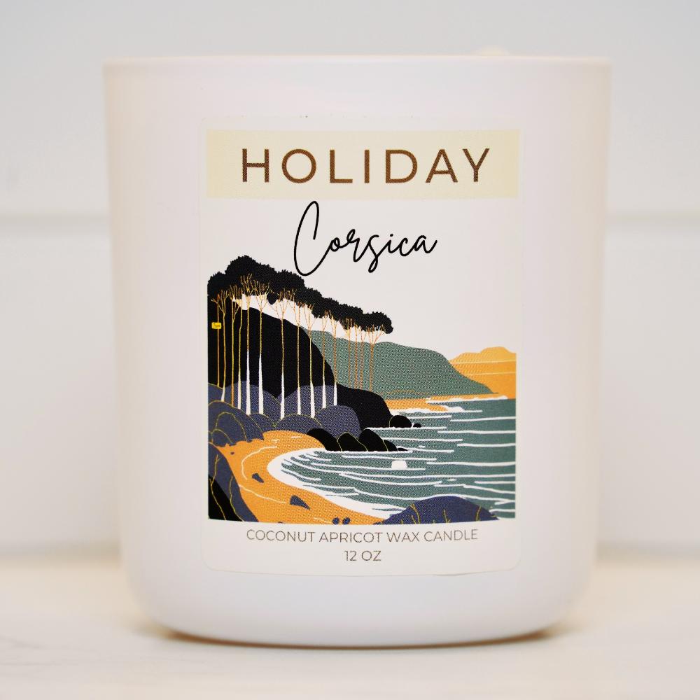 Experience a serene escape with Corsica from Holiday. This refreshing self-care scent starts with soothing marine and spearmint top notes that interplay with a calming heart of eucalyptus. Base notes of sea salt, powder, and juniper elevate the fragrance to pure relaxation. (12oz)